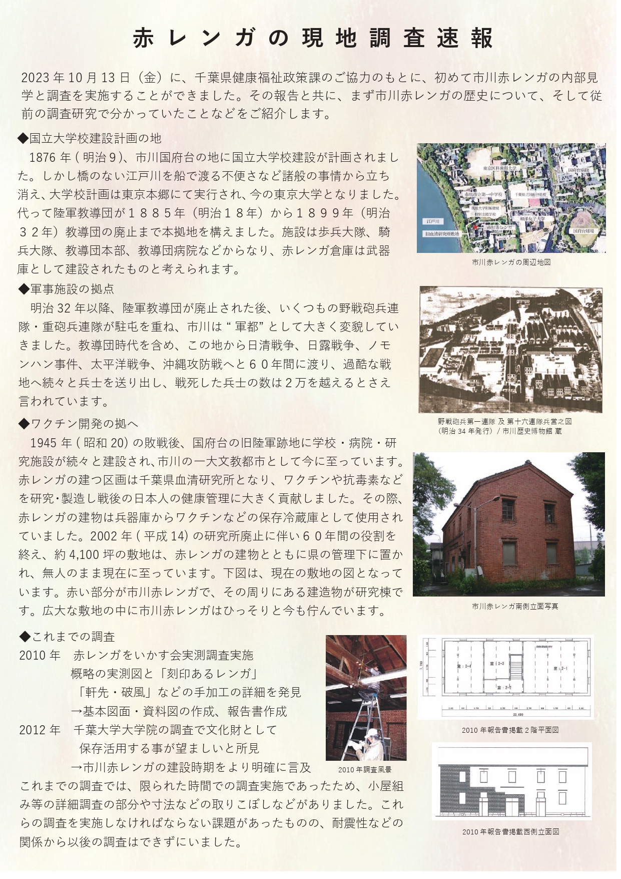 赤レンガをいかす会では、2023年度、千葉商科大学の「地域志向活動助成金制度」の助成を受け、〈市川赤レンガの保存と活用を含めた「市川国府台」地域計画検討案作成プロジェクト〉に取り組んできまし…