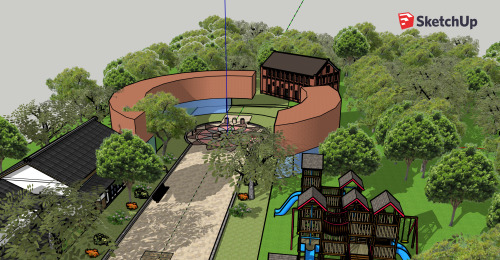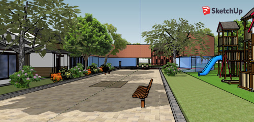 この案では、大人と子供の視点を考えるべく、スケッチアップで3D空間を把握し、全体的な計画をしています。